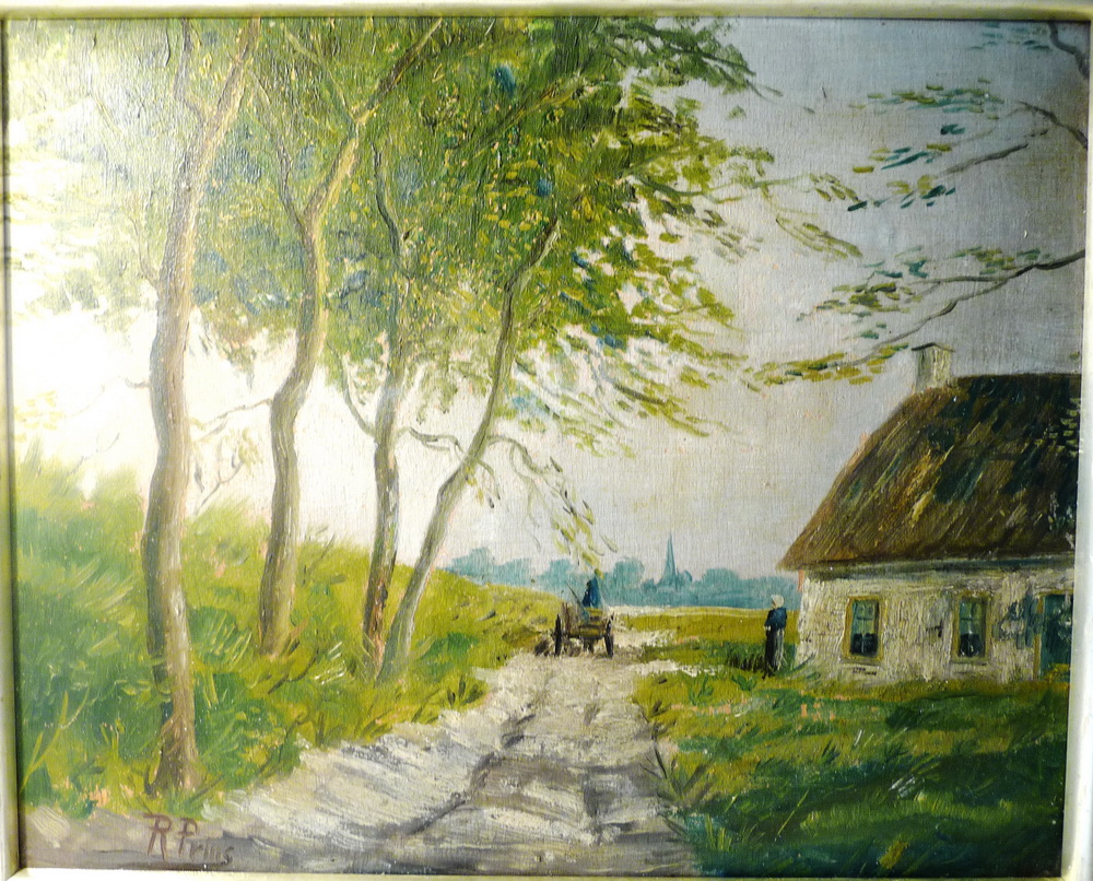 Zo werd ook een oude gracht van een afgebroken boerderij aangedaan ter hoogte van de Sportlaan in Bedum. Met de bedoeling dat de gracht wel eens gedempt zou worden was het toen nog gebruikelijk (ook door de gemeente!) deze vol te storten met puin en ander afval. Natuurlijk trok deze “troep” de aandacht van Roel en die ontdekte tussen de rommel een oud schilderij zonder lijst. Hiermee thuis komende werd het ook door de ouders van hem geadopteerd en boven het trapgat gehangen. Het was gesigneerd met “R.Prins” en gedateerd met “1924”. Het werd al gauw duidelijk dat het werk van bekende kunstenaar Riekele Prins was. Toen Roel later het ouderlijk huis verliet ging het schilderij natuurlijk mee.