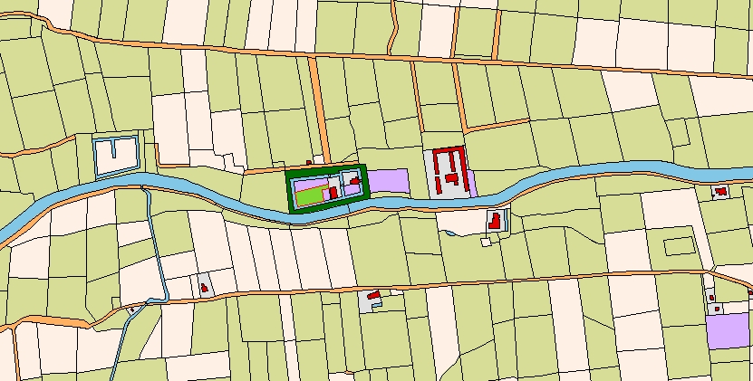 De volgende kaartjes geven exact de locatie weer van dit dijkje nl. tussen de gracht (groen omrand) van de boerderij “De Brake” en het Winsumerdiep. Rechts daarvan ligt de Steenfabriek “DE BRAKE”