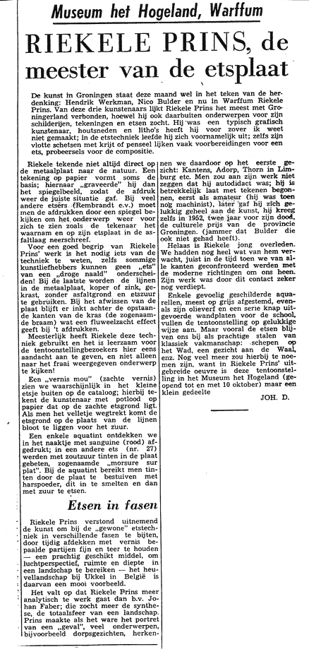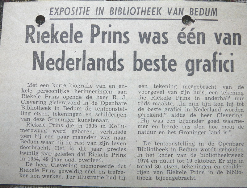 - Berichten omtrent exposities van werken van Riekele Prins.
