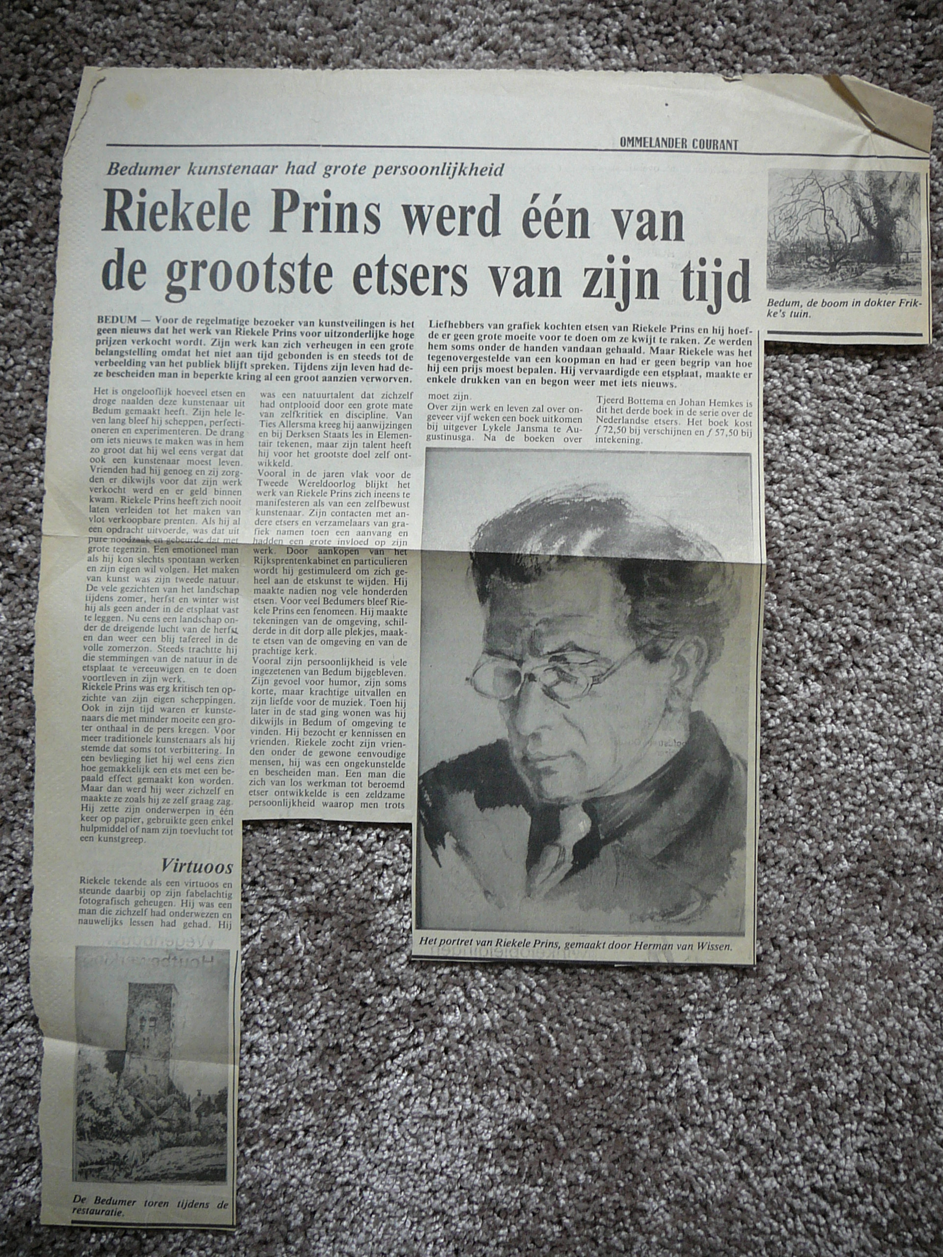 - Artikel in de Ommelander Courant over Riekele Prins op 15 juli 2010