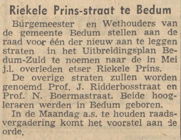 - Berichten rond de uitgaven van het boek “Riekele Prins” van Lykele Jansma in 1982