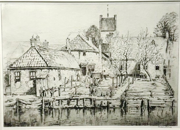 Gezien de locatie is gedempt hierbij nog een oude foto zoals het ooit was. Rechts het hek die ook op de ets staat. De ets wordt in spiegelbeeld afgedrukt.